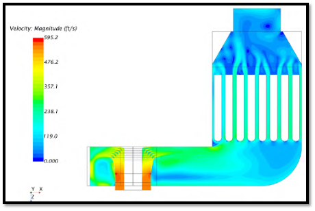 Proper aerodynamic design reduces extreme localized velocities in the system which can lead to concentrated hot spots. We know from simple convective heat transfer physics that the rate of heat transfer increases with the increase in velocity of fluids. With optimal aerodynamics, the gas flow will be as laminar as possible with minimized flow velocity, which helps to reduce the deterioration of the internal liner system and transfer of damaging heat to the exterior duct walls.