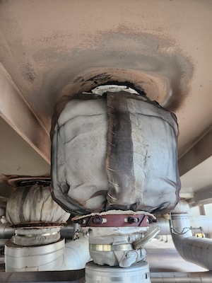 Penetration seals endure temperatures over 1,000°F and up to 200 cycles a year. Each startup and shutdown forces the seal to expand and contract with the ductwork, liners, and piping, absorbing several inches of differential movement. This constant expansion and contraction lead to material fatigue, cracking, and loss of flexibility, making fatigue the most common cause of failure.